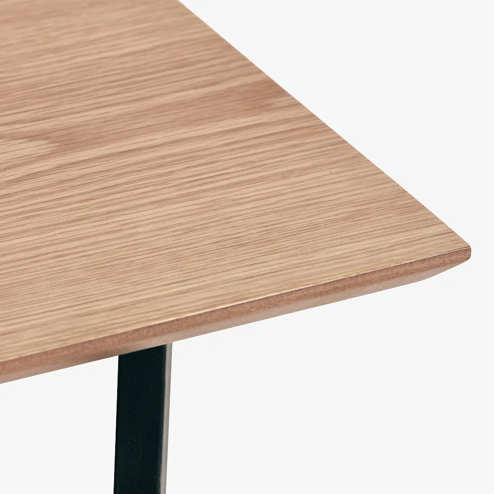 Përmasa: 120×60 x44cm. Materialet: Furnir lisi me teksturë natyrale, Kornizë dhe këmbë metalike në ngjyrë të zez. Dizajni: Linja të pastra dhe moderne, Prodhimi: Me porosi, deri në 14ditë pune. Transporti: Falas për Tiranën.