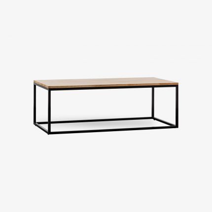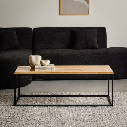 Tavoline Mesi Përmasa:  120×60 x44cm. Materialet: Furnir lisi me teksturë natyrale, Kornizë dhe këmbë metalike në ngjyrë të zez. Dizajni: